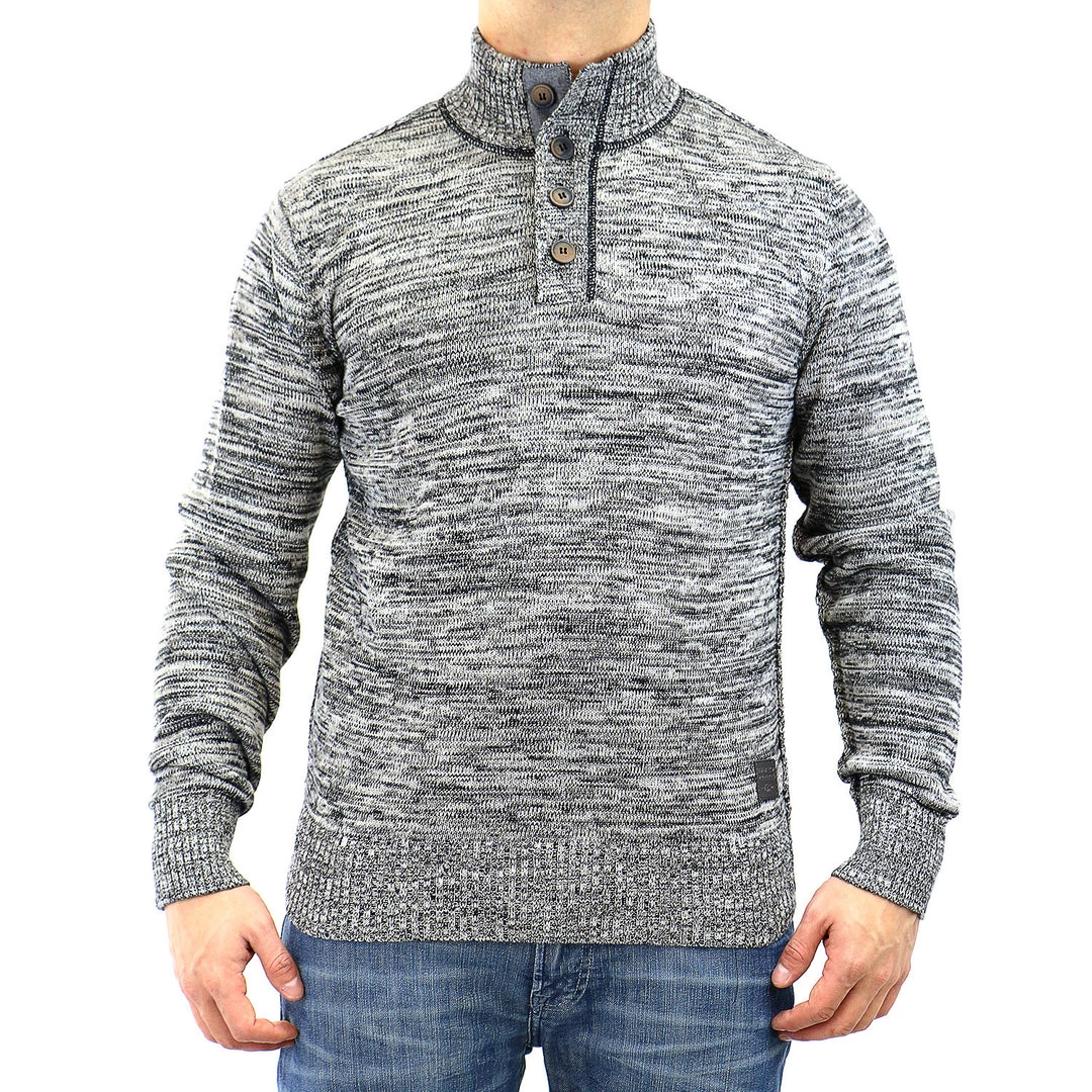 A dark pair of jeans, this long sleeve Buffalo sweater and a nice pair of brown shoes makes for the perfect fall/winter outfit. Featuring buttoned collar and ribbed neckline, cuffs and waistband.