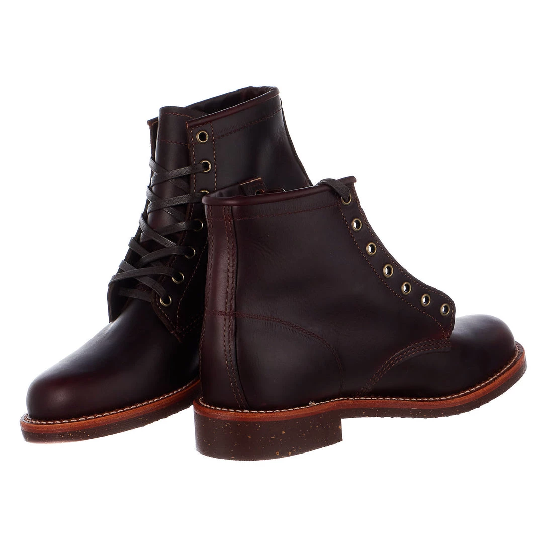 There’s a vintage classic feel in the Crazy Horse General Utility Service 6-inch tall men’s lace-up boot featuring a rugged golden brown leather exterior and thick brown waxed cotton laces for durability. It’s crafted for comfort with the Texon® Poron cushioned maple leather covered insoles that offer lasting support and the steel shank provides stability. The Vibram® Heritage rubber outsole combines traction and slip-resistance on various terrain with a flexible fit so you’re guaranteed freedom of movement. This style is proudly Handcrafted in the USA with imported materials.Â