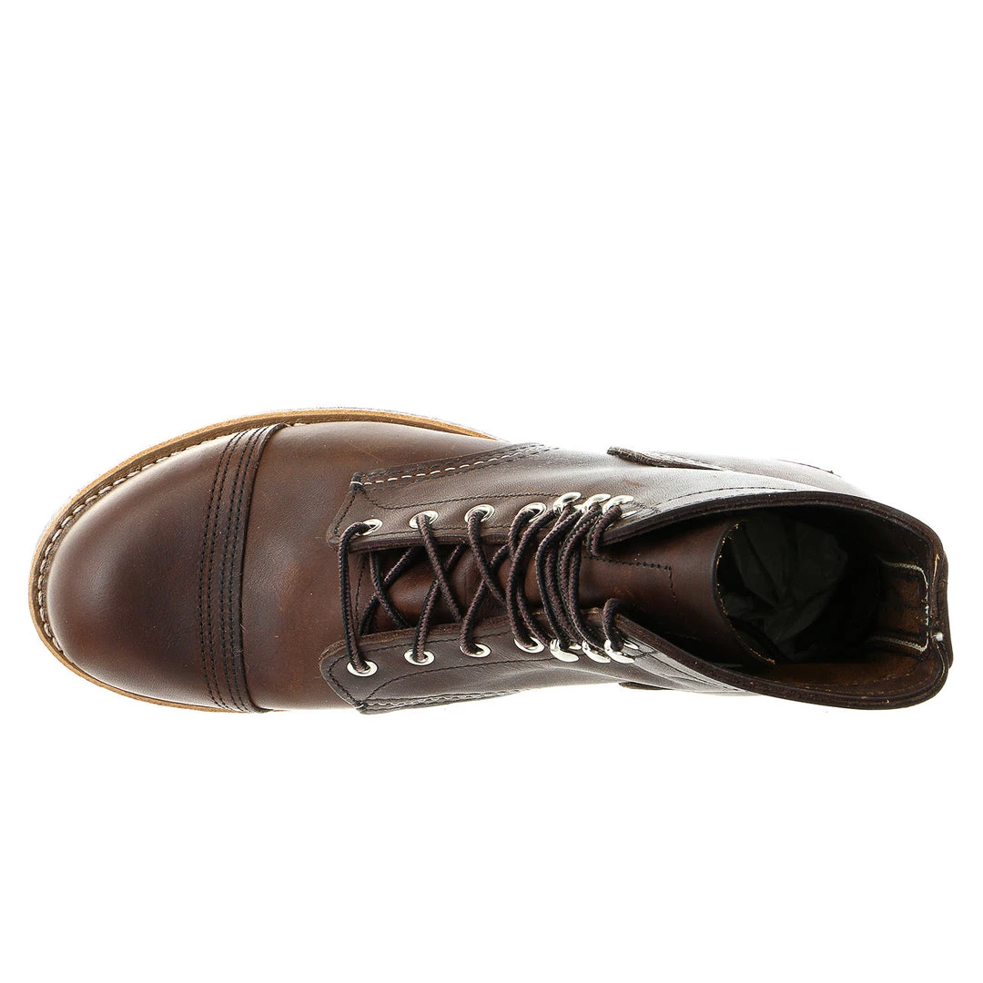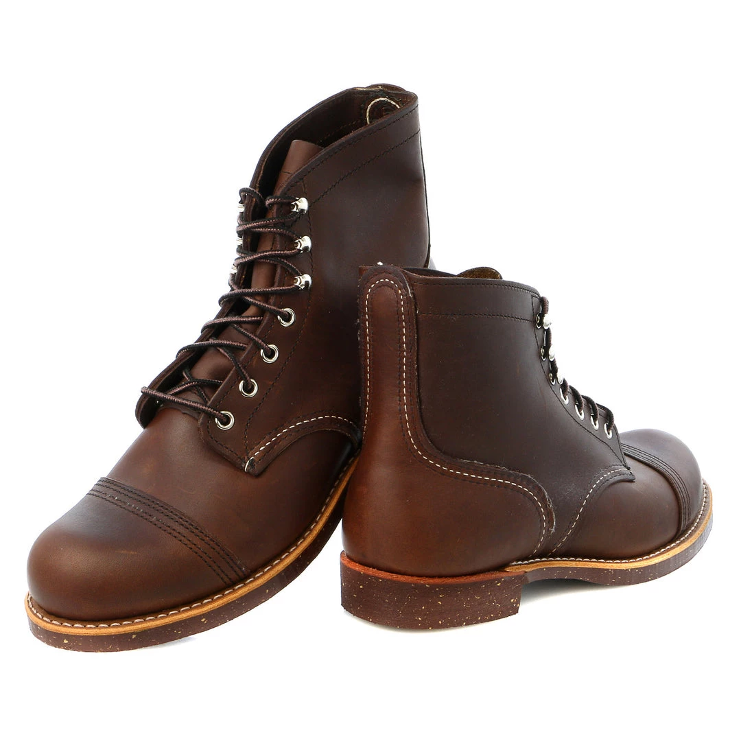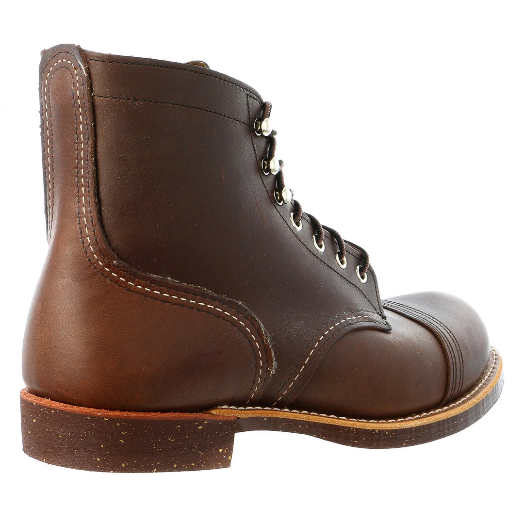 Handcrafted in the USA with durable stitch-down welt construction and premium quality leather, the Iron Ranger boot from Red Wing will offer years of comfortable wear. This robust boot is built on a non-marking, oil-resistant sole and handsomely detailed with contrast stitching, a cap toe, and high polish hooks and eyelets.