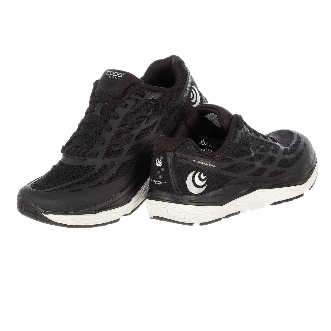 Magnifly 2 is a cushioned, 0-drop road running shoe featuring a 2-density injected EVA midsole; softer near the foot for cushioning and comfort, firmer and snappier on the bottom layer for propulsion and response. A sweeping toe rocker aids the transition and toe-off through the gait cycle.