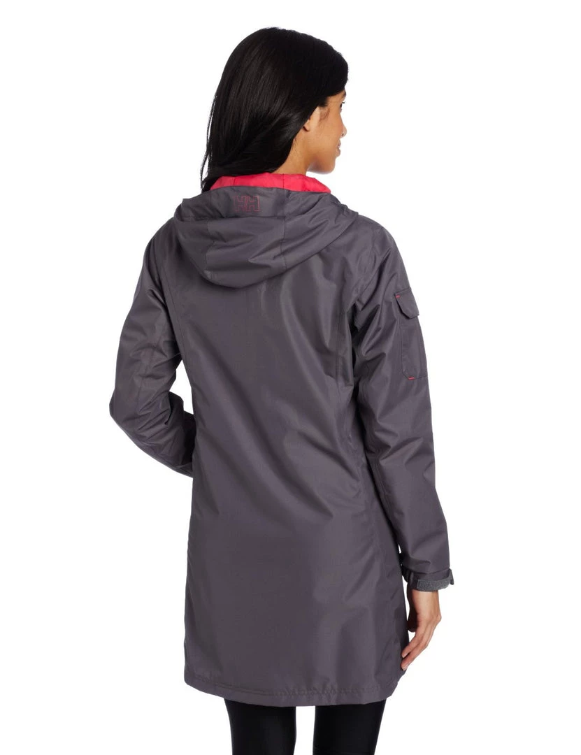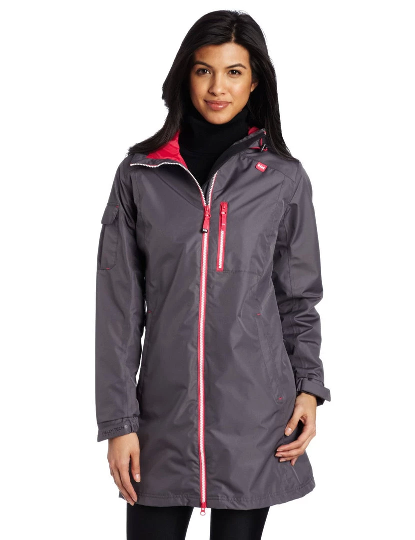 3/4 length, Helly Tech protection treated raincoat and hood keep the rain outside, with comfort features inside. The mesh liner keeps you dry with added warmth and sporty detailing. Adjustable fit and zippered pockets add convenience.